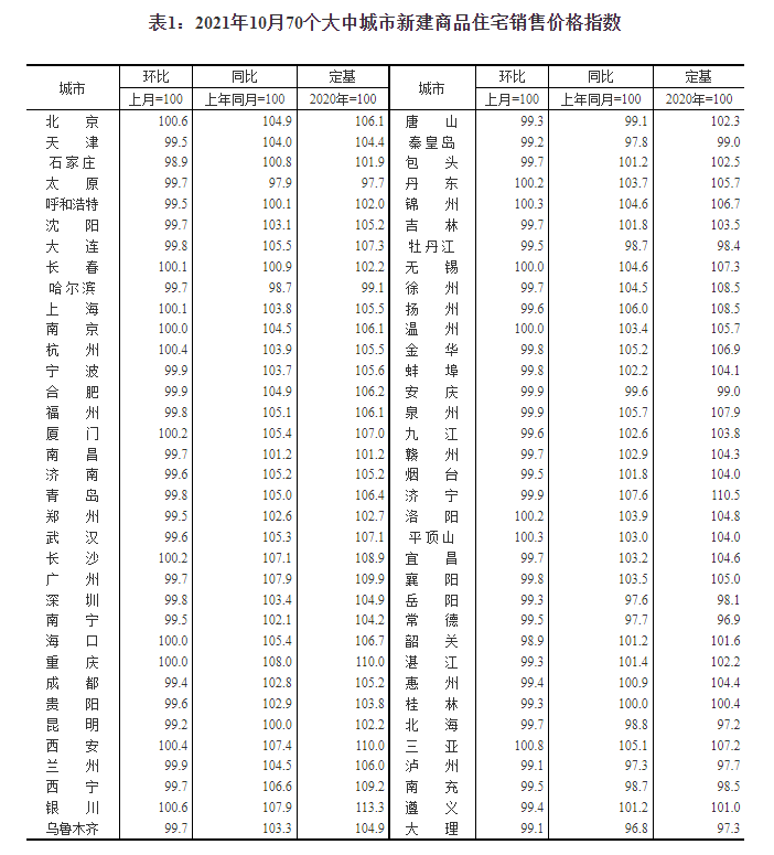 國家統計局數據顯示,10月超7成大中城市新房價格下跌,超9成二手房價格下跌。