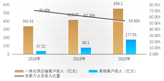 2020年一體化供應鏈客戶貢獻營收比重達75.8%,相比2018年的90%下降了近16個百分點。