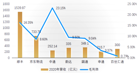物流行業2020年營收、毛利率