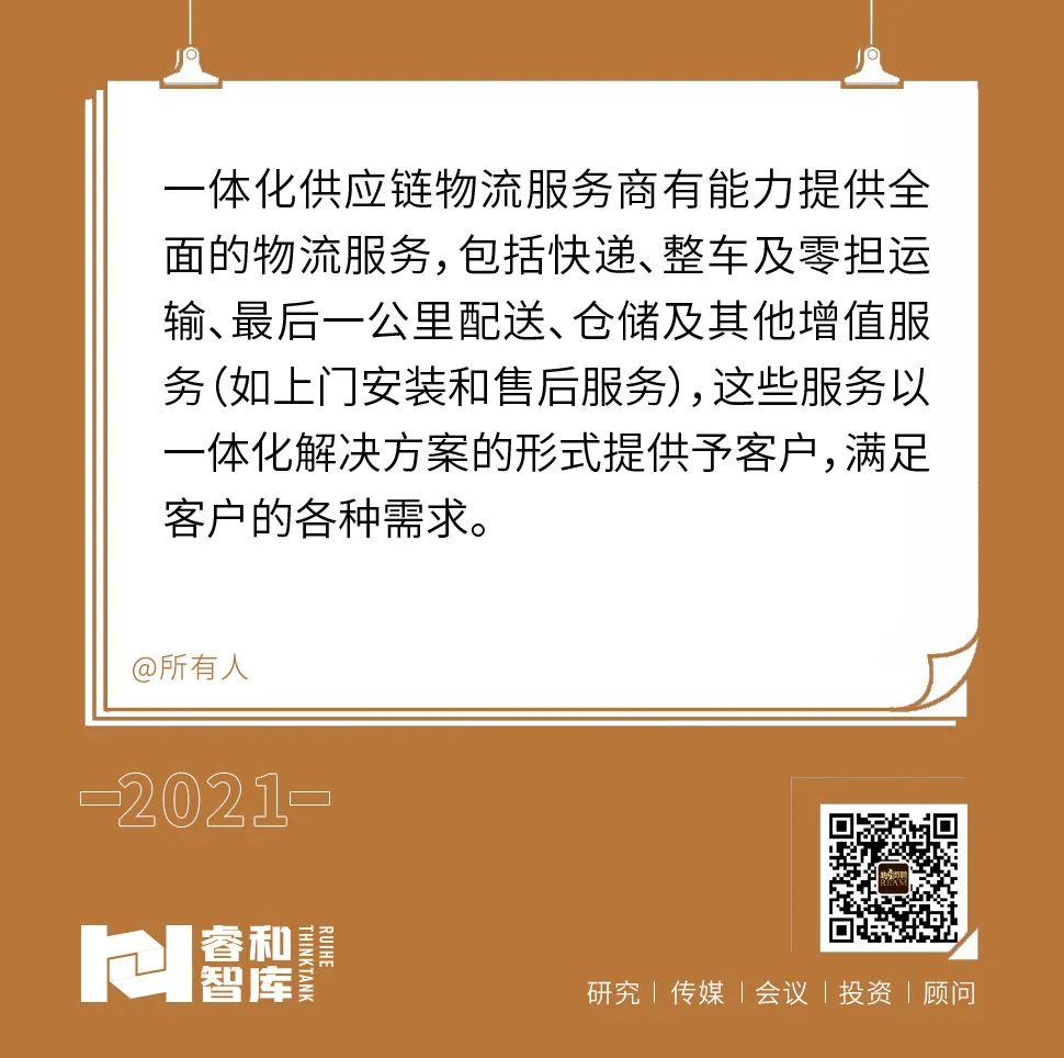 中國經濟數字化快速發展,終端消費者多樣化、個性化的需求,促使企業需要提供更為高效靈活的供應鏈物流服務。此外,一體化供應鏈物流服務對企業供應鏈數據進行覆蓋和分析,為企業提供增值服務。