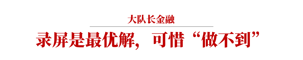 可惜的是, 無論是出于技術(shù)原因考慮, 或是用戶體驗(yàn)的角度考慮, 據(jù)我們觀察在目前已經(jīng)上線的銷售系統(tǒng)中, 即便是針對風(fēng)險承受能力評測、產(chǎn)品風(fēng)險揭示、認(rèn)購確認(rèn)等核心步驟也沒有配置錄屏記錄的功能。只能無奈的說一句, 錄屏雖好, 可惜“做不到”。