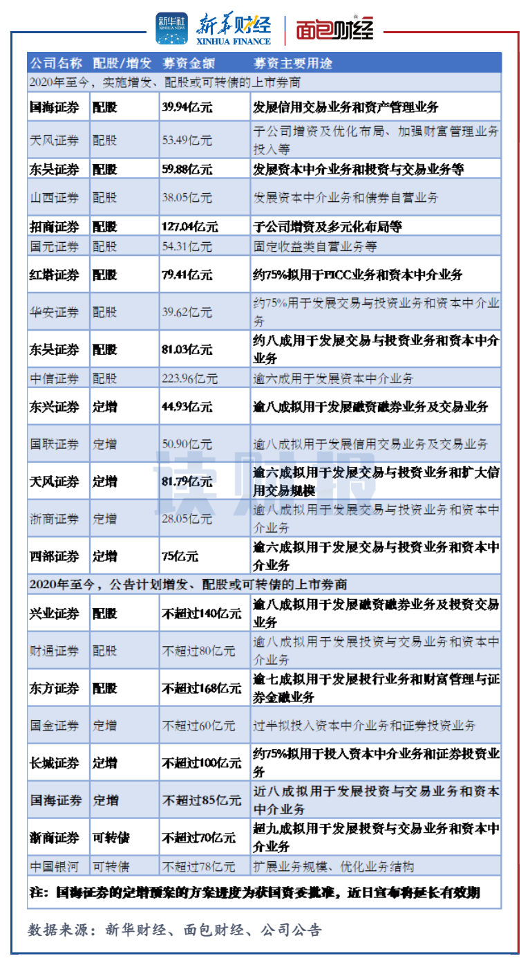 目前,A股上市券商正在掀起新一輪募資補血高潮,2020年至今,20余家券商已經完成或正在籌劃再融資事宜,合計金額或超過1800億元。