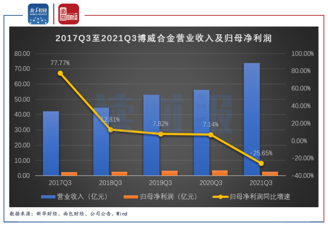 圖4:2017Q3至2021Q3博威合金營業收入及歸母凈利潤