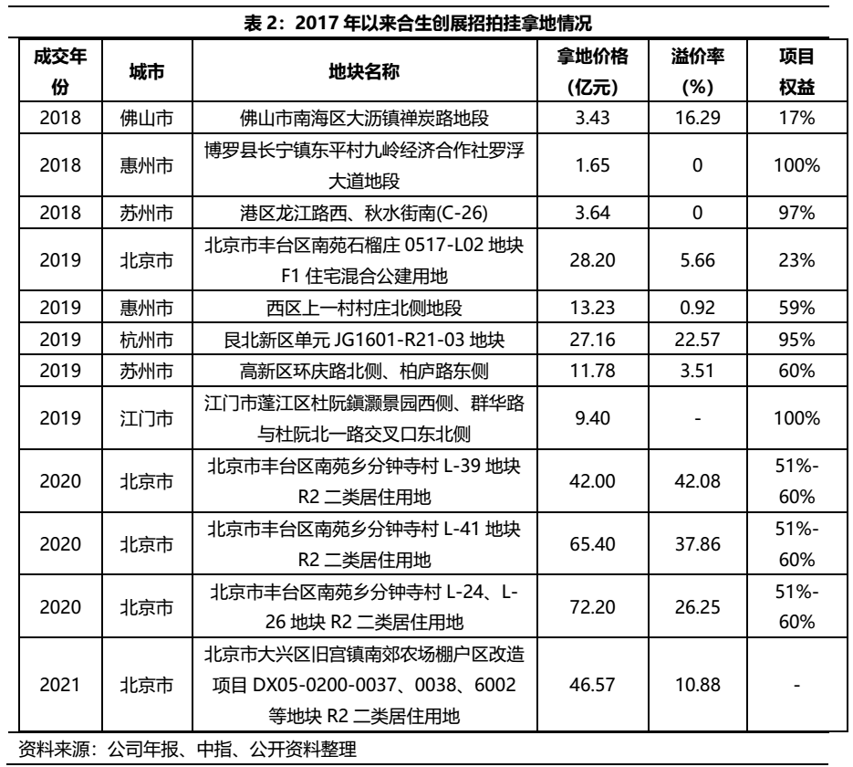 而合生創展則由小女兒朱桔榕接班,2020年1月10日,朱孟依的女兒朱桔榕獲任為董事會主席,正式接班合生創展,因此2020年年報可以算是合生創展二代交接后上交的第一份答卷。自營業收入規模上看,新官上任的沖勁十足,2020年合生創展的總營收較上年末同比增加了84.67%,并拿下多個高溢價招拍掛地塊,與朱孟依策略有著180度的轉變。此外,需關注的是,朱桔榕目前僅持股0.09%,需關注后續仍有二次接班與經營策略轉型的可能性。