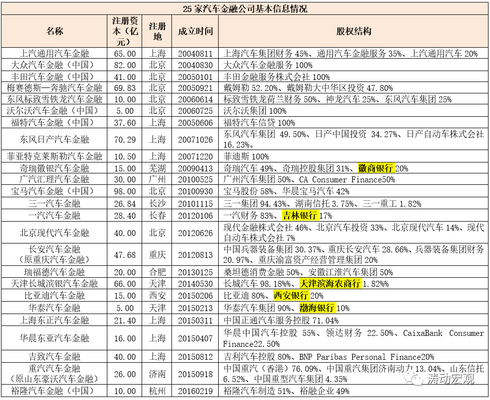 除汽車公司本身控股外,也有一些金融機構參與到汽車金融公司中。