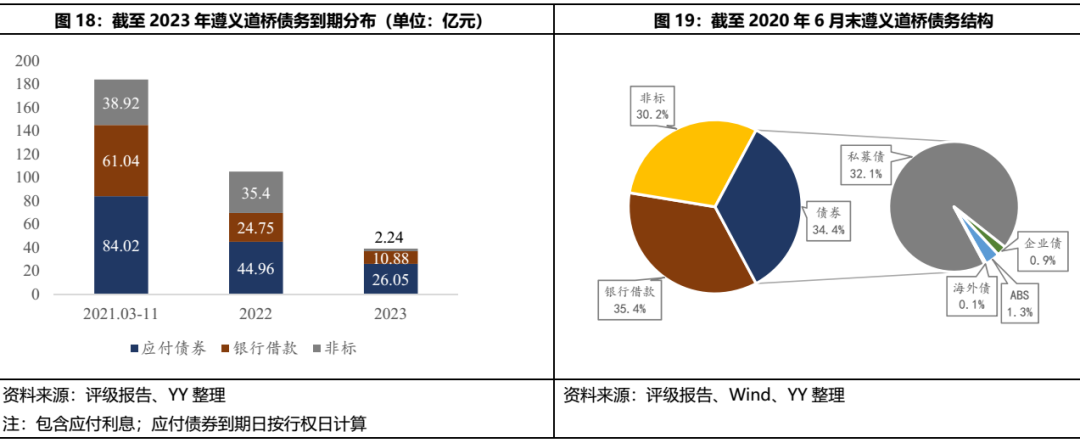 從債務到期結構來看,遵義道橋在2021年將要償還約183.98億元的債務,而2020Q3的賬面貨幣資金僅有16.62億,存在很大的集中兌付壓力。