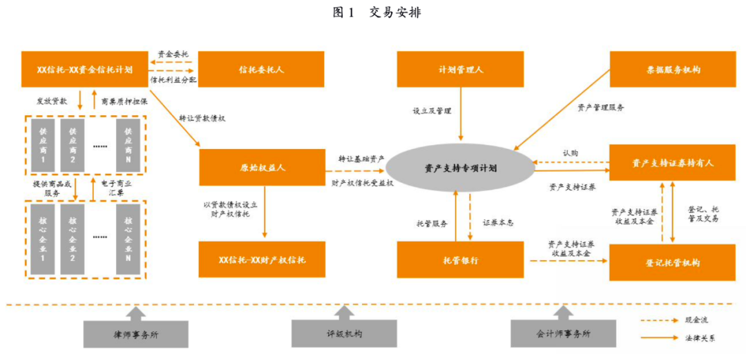 結(jié)合上文所分析的電子商票類資產(chǎn)的自身優(yōu)勢(shì),我們可以通過對(duì)資產(chǎn)證券化業(yè)務(wù)中交易結(jié)構(gòu)部分進(jìn)行針對(duì)性的設(shè)計(jì),進(jìn)一步“因材施策”,降低資產(chǎn)支持證券所面臨的風(fēng)險(xiǎn)。