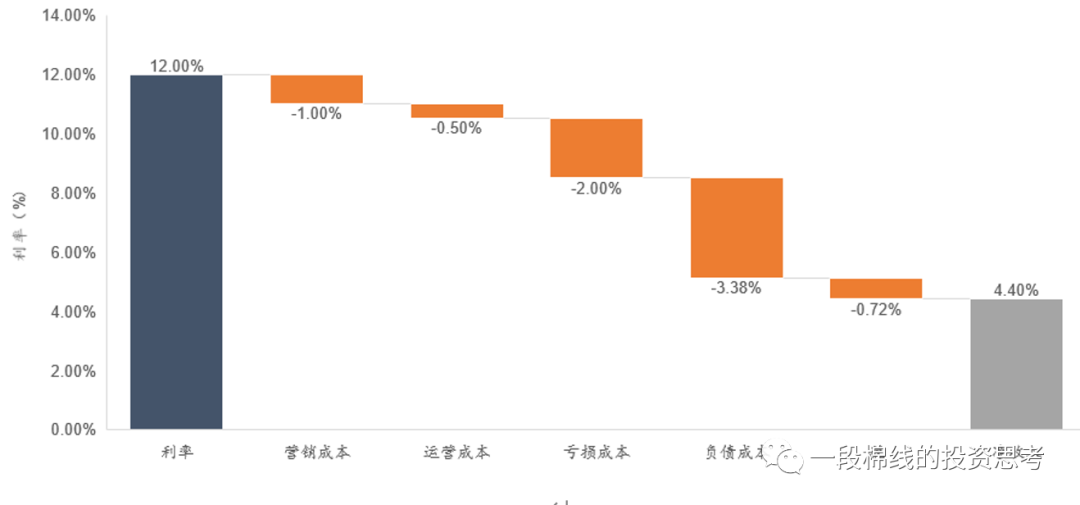 在這一商業(yè)模式下,風(fēng)險成本控制對經(jīng)營機(jī)構(gòu)來說只是獲得利潤最大化的手段而非目的。零售信貸機(jī)構(gòu)對風(fēng)險成本的管理主要體現(xiàn)為盡量控制年化風(fēng)險成本表現(xiàn)穩(wěn)定,非追求年化不良率的絕對水平最低。