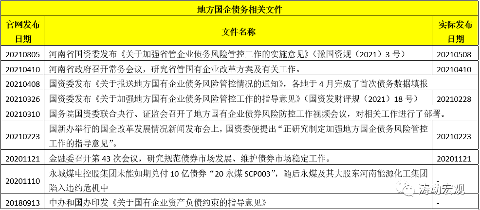 雖然3號(hào)文只是由河南省發(fā)布,且這一輪地方國(guó)企債務(wù)整頓由河南的永煤控股違約引起,但考慮到地方國(guó)企債務(wù)風(fēng)險(xiǎn)的整頓是一項(xiàng)系統(tǒng)工程,不僅涉及到債券市場(chǎng)生態(tài),亦關(guān)系到國(guó)企改革以及地方隱性債務(wù),因此3號(hào)文具有普適性。