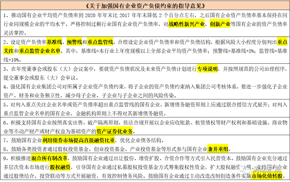 3、對(duì)高負(fù)債企業(yè),要通過(guò)控投資、壓負(fù)債、增積累、引戰(zhàn)投、債轉(zhuǎn)股等方式多措并舉降杠桿減負(fù)債。