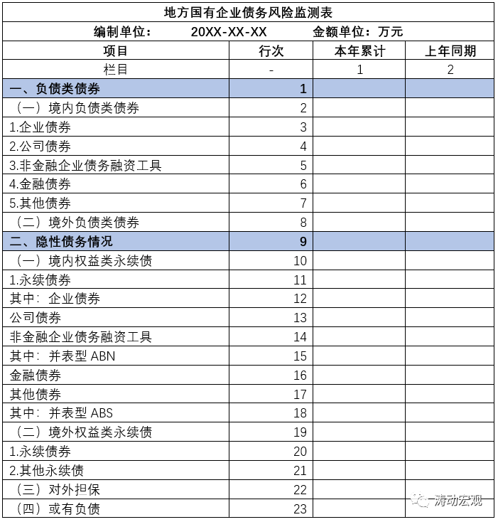 (一)附件1:地方國(guó)有企業(yè)債務(wù)風(fēng)險(xiǎn)監(jiān)測(cè)表