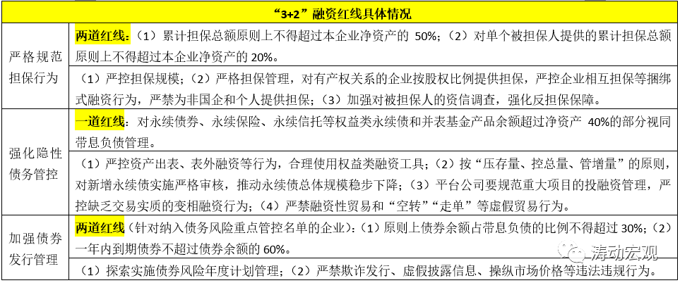 (二)“3+2”融資紅線:涉及擔(dān)保、隱性債務(wù)以及債券發(fā)行等三大領(lǐng)域