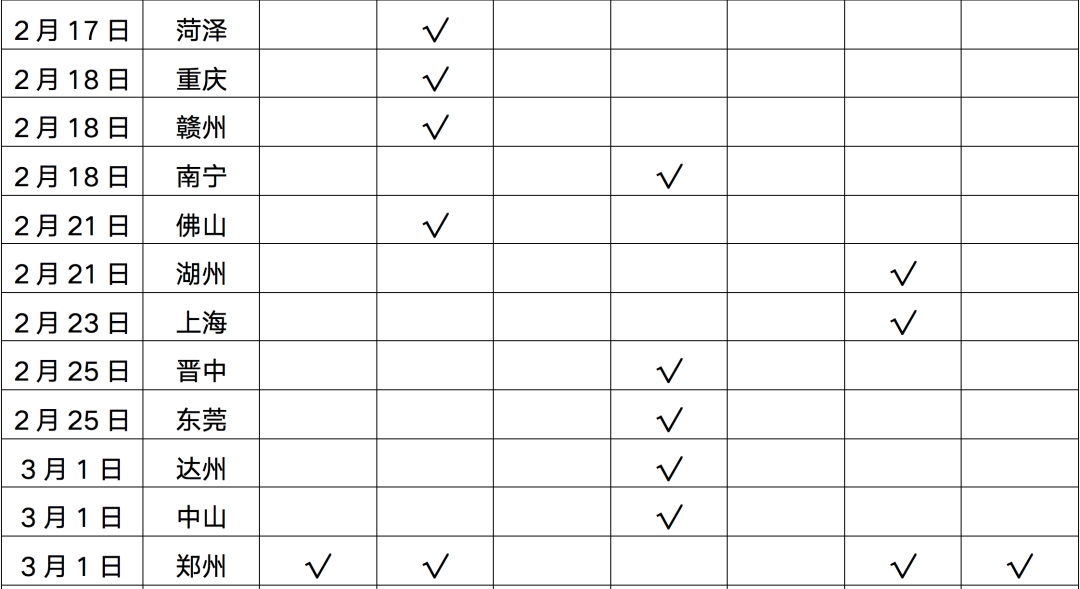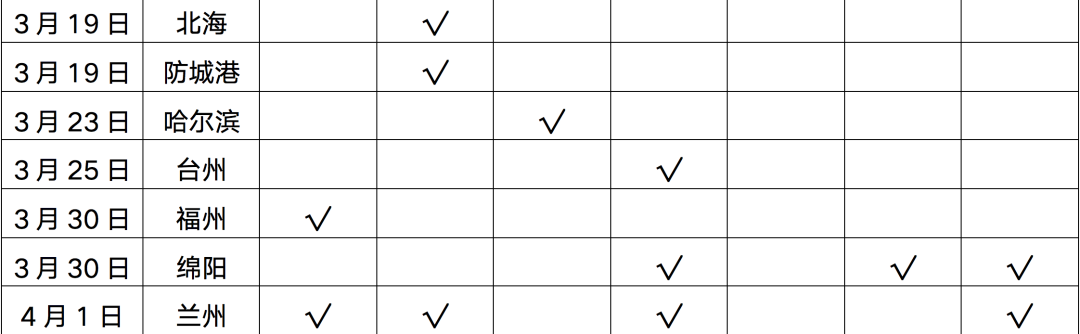表:2022年1-4月政策松綁城市