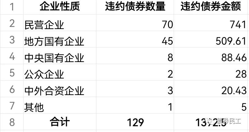 2、從違約信用債券的企業性質來看,民營企業是違約的主力,違約債券數量和違約債券金額均超過了50%。但是地方國有企業的違約數量和金額也不容小覷。違約的中央國有企業主要是紫光集團和北大方正集團。