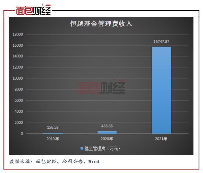隨著管理規模的迅速擴張,恒越基金的管理費用也水漲船高。根據年報數據,恒越基金2021年管理費收入合計達1.57億元,而2020年的管理費收入僅438萬元。
