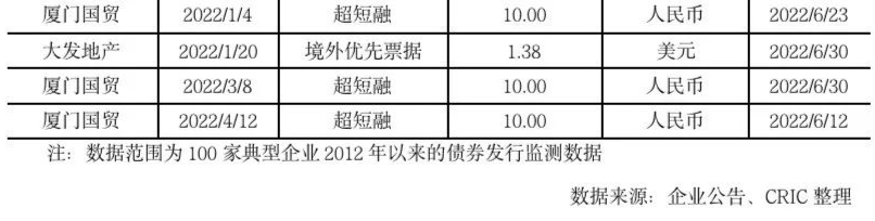 提前關注到2022年6月將有44筆債券到期,合計約639億元,環比增加68.6%,又一波償債潮即將到來。其中,佳兆業到期的4只境外優先票據、新力到期的一只優先票據以及華夏幸福的一筆境外債已經出現了利息違約。從到期債券規模來看,單筆金額最高為佳兆業于2017年發行的8.2億美元的境外優先票據。