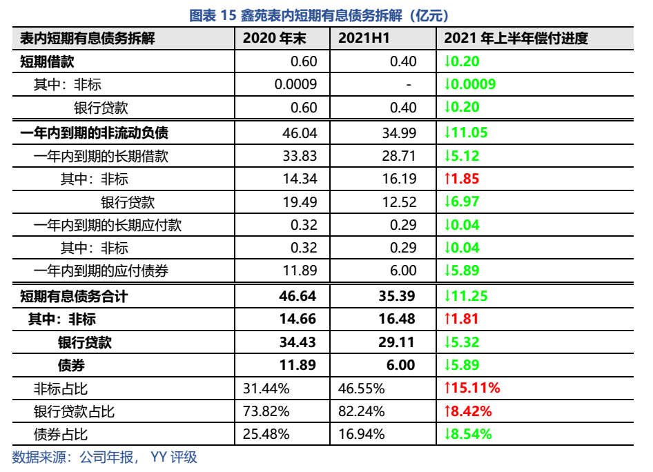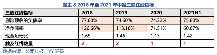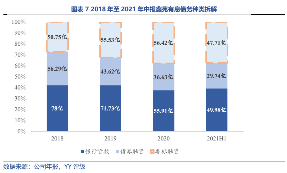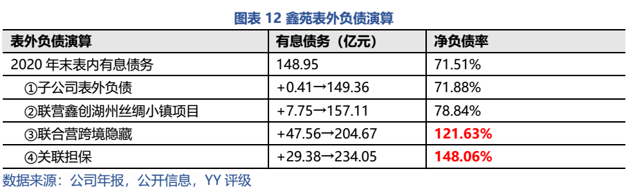 表內(nèi)有息債務(wù)總體收縮,但非標(biāo)規(guī)模高居不下,嚴(yán)重拖累融資成本,若繼續(xù)惡化則極可能面臨資金鏈危機(jī)。此外,表外負(fù)債藏匿規(guī)模較大,債務(wù)明顯出表,調(diào)整后觸及兩條紅線,負(fù)債情況堪憂。